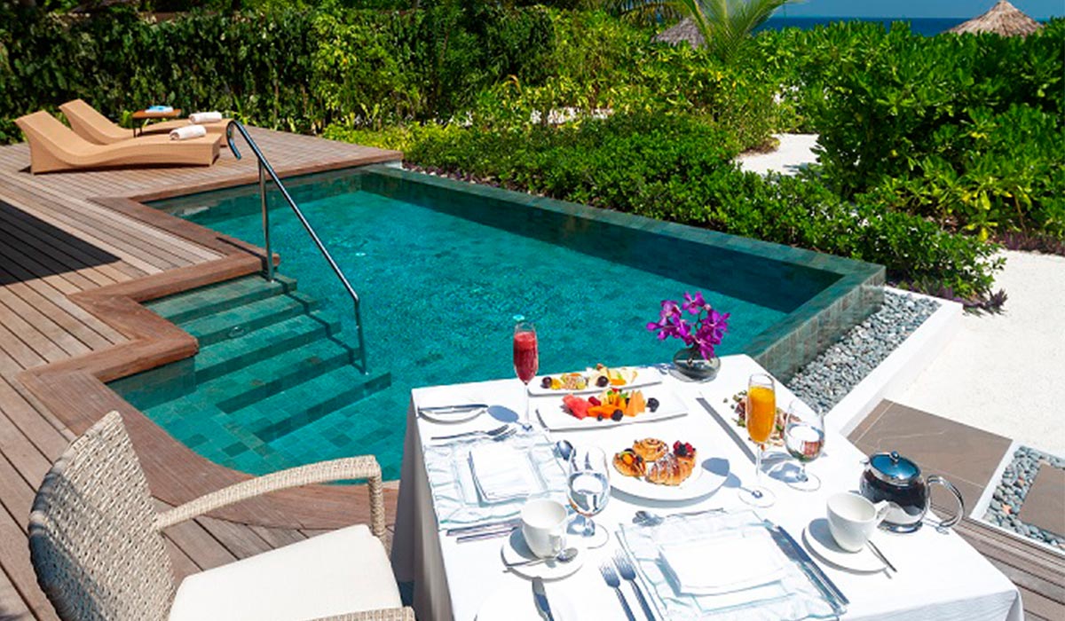 A private champagne breakfast for you and your partner once during your holiday is included, with a beautiful tropical fruit platter and freshly baked pastries, to begin another day of Baros bliss.